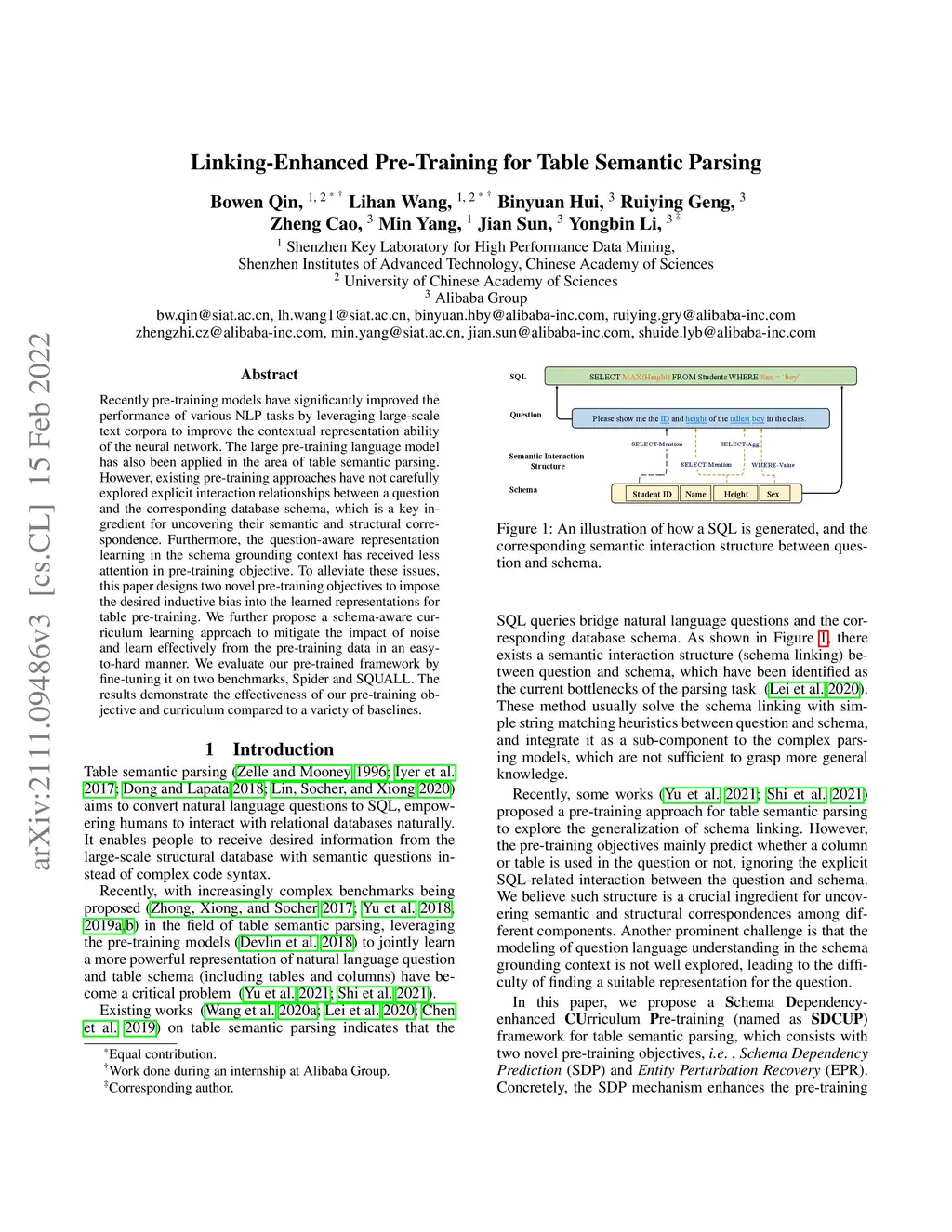 Recently pre-training models have significantly improved the performance of various NLP tasks by leveraging large-scale text corpora to improve the contextual representation ability of the neural network. The large pre-training language model has also been applied in the area of table semantic parsing. However, existing pre-training approaches have not carefully explored explicit interaction relationships between a question and the corresponding database schema, which is a key ingredient for uncovering their semantic and structural correspondence. Furthermore, the question-aware representation learning in the schema grounding context has received less attention in pre-training objective.To alleviate these issues, this paper designs two novel pre-training objectives to impose the desired inductive bias into the learned representations for table pre-training. We further propose a schema-aware curriculum learning approach to mitigate the impact of noise and learn effectively from the pre-training data in an easy-to-hard manner. We evaluate our pre-trained framework by fine-tuning it on two benchmarks, Spider and SQUALL. The results demonstrate the effectiveness of our pre-training objective and curriculum compared to a variety of baselines.
