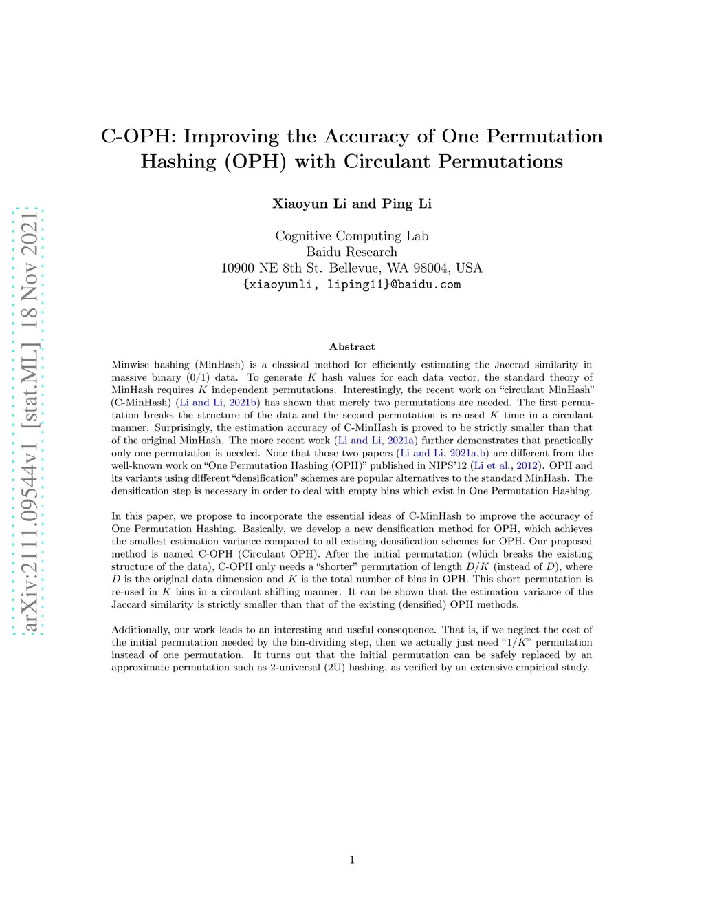C-OPH: Improving the Accuracy of One Permutation Hashing (OPH) with