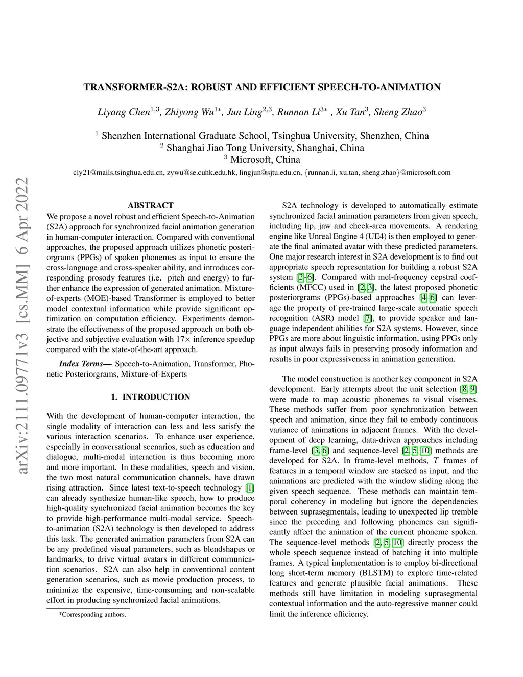 Transformer-S2A: Robust and Efficient Speech-to-Animation
