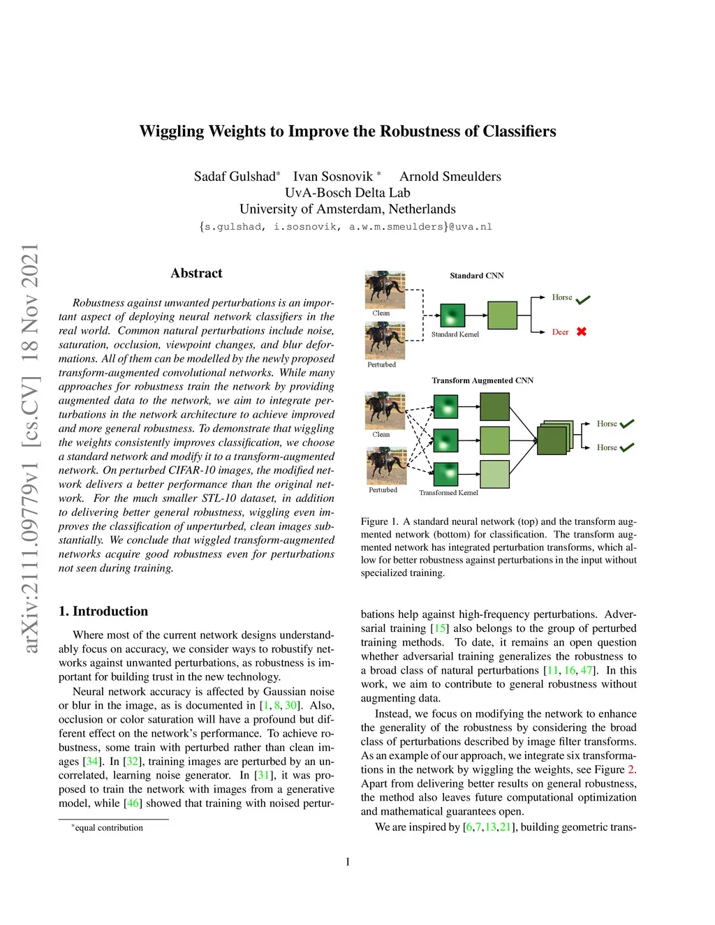 Robustness against unwanted perturbations is an important aspect of deploying neural network classifiers in the real world. Common natural perturbations include noise, saturation, occlusion, viewpoint changes, and blur deformations. All of them can be modelled by the newly proposed transform-augmented convolutional networks. While many approaches for robustness train the network by providing augmented data to the network, we aim to integrate perturbations in the network architecture to achieve improved and more general robustness. To demonstrate that wiggling the weights consistently improves classification, we choose a standard network and modify it to a transform-augmented network. On perturbed CIFAR-10 images, the modified network delivers a better performance than the original network. For the much smaller STL-10 dataset, in addition to delivering better general robustness, wiggling even improves the classification of unperturbed, clean images substantially. We conclude that wiggled transform-augmented networks acquire good robustness even for perturbations not seen during training.