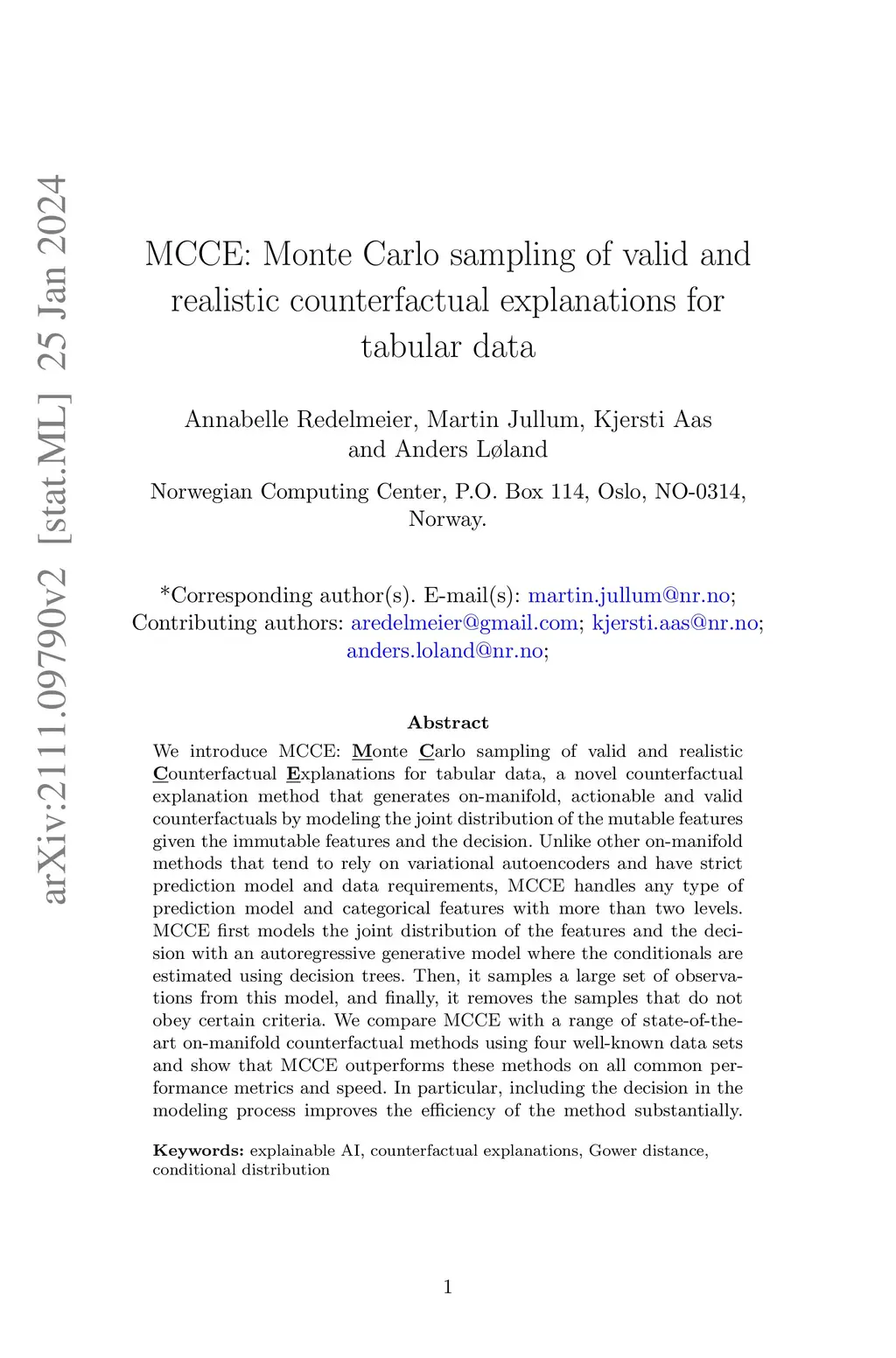 MCCE: Monte Carlo sampling of realistic counterfactual explanations