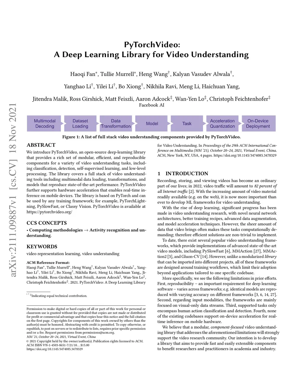 PyTorchVideo: A Deep Learning Library for Video Understanding