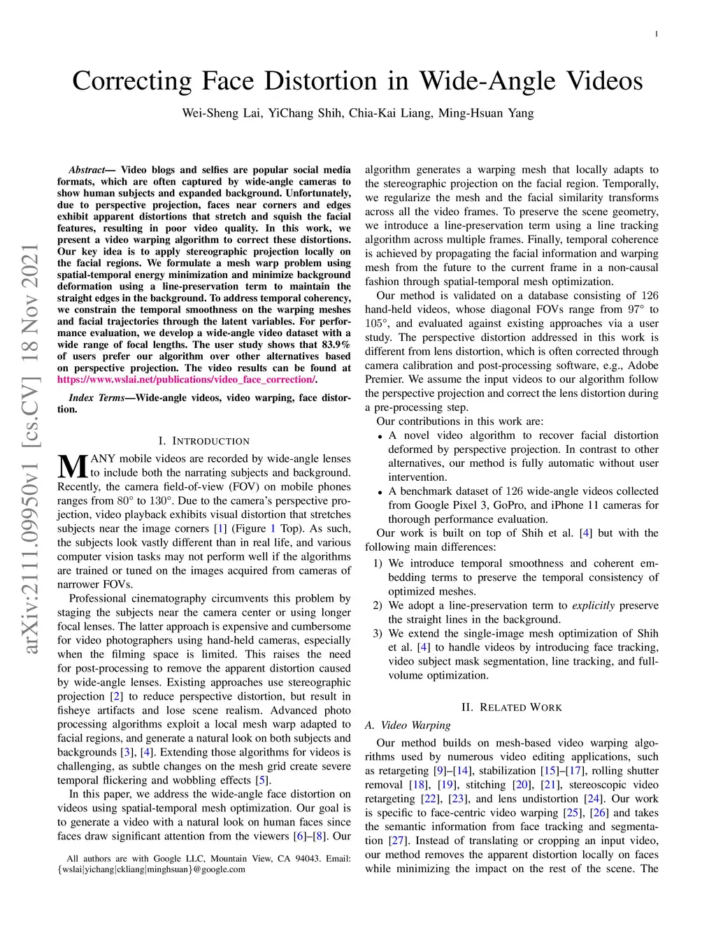 Correcting Face Distortion in Wide-Angle Videos