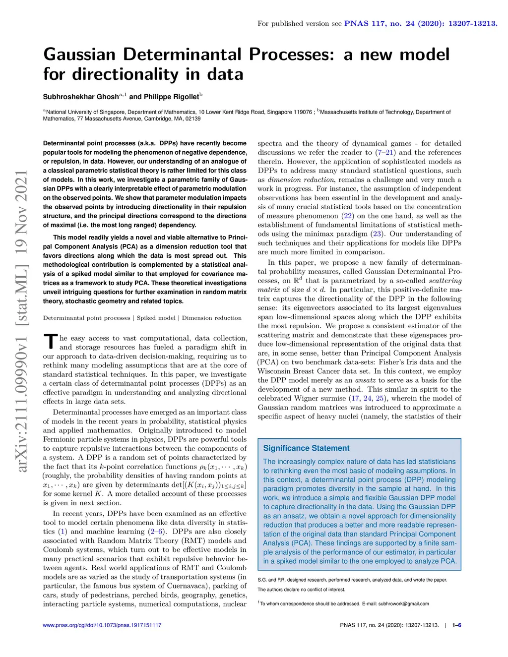 Gaussian Determinantal Processes: a new model for directionality in data