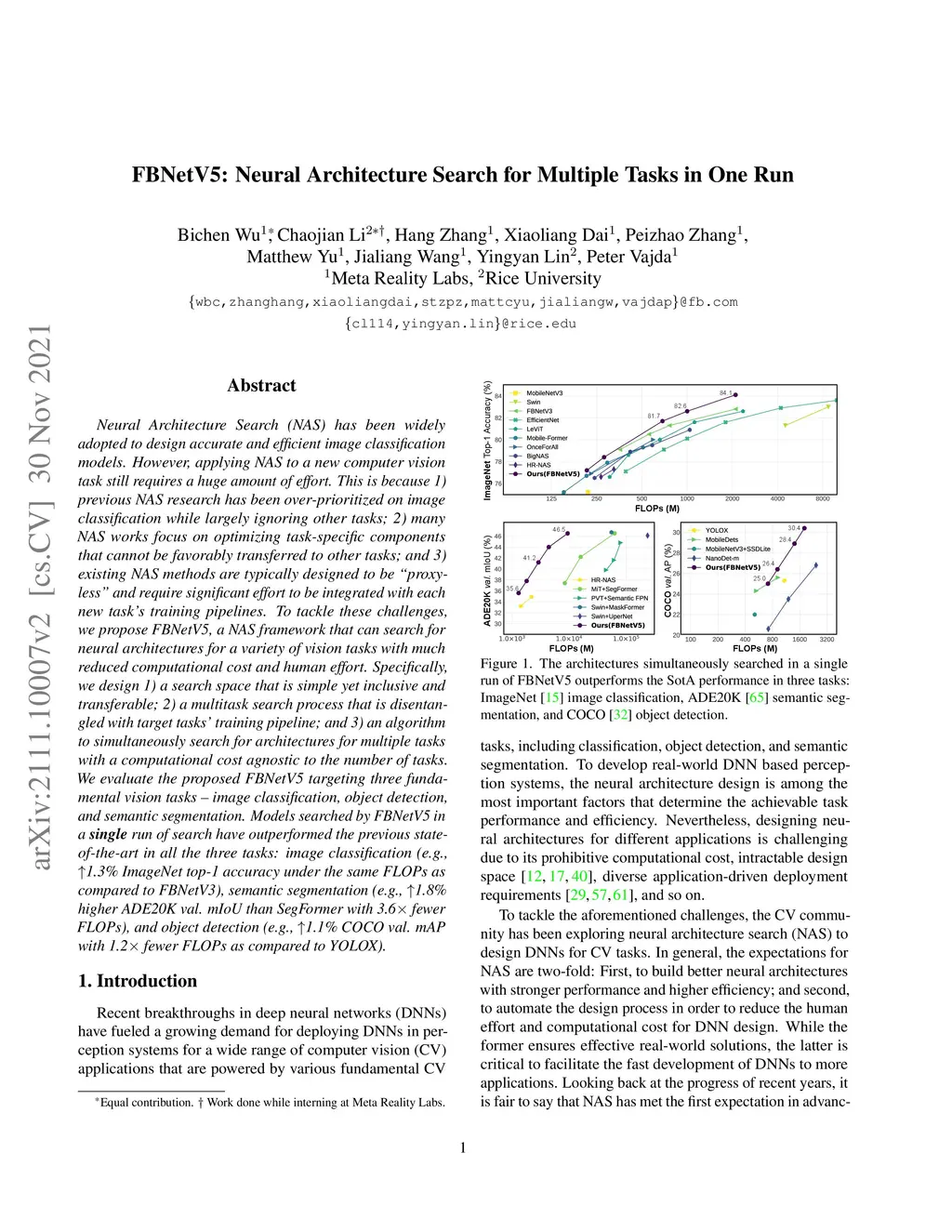 FBNetV5: Neural Architecture Search for Multiple Tasks in One Run