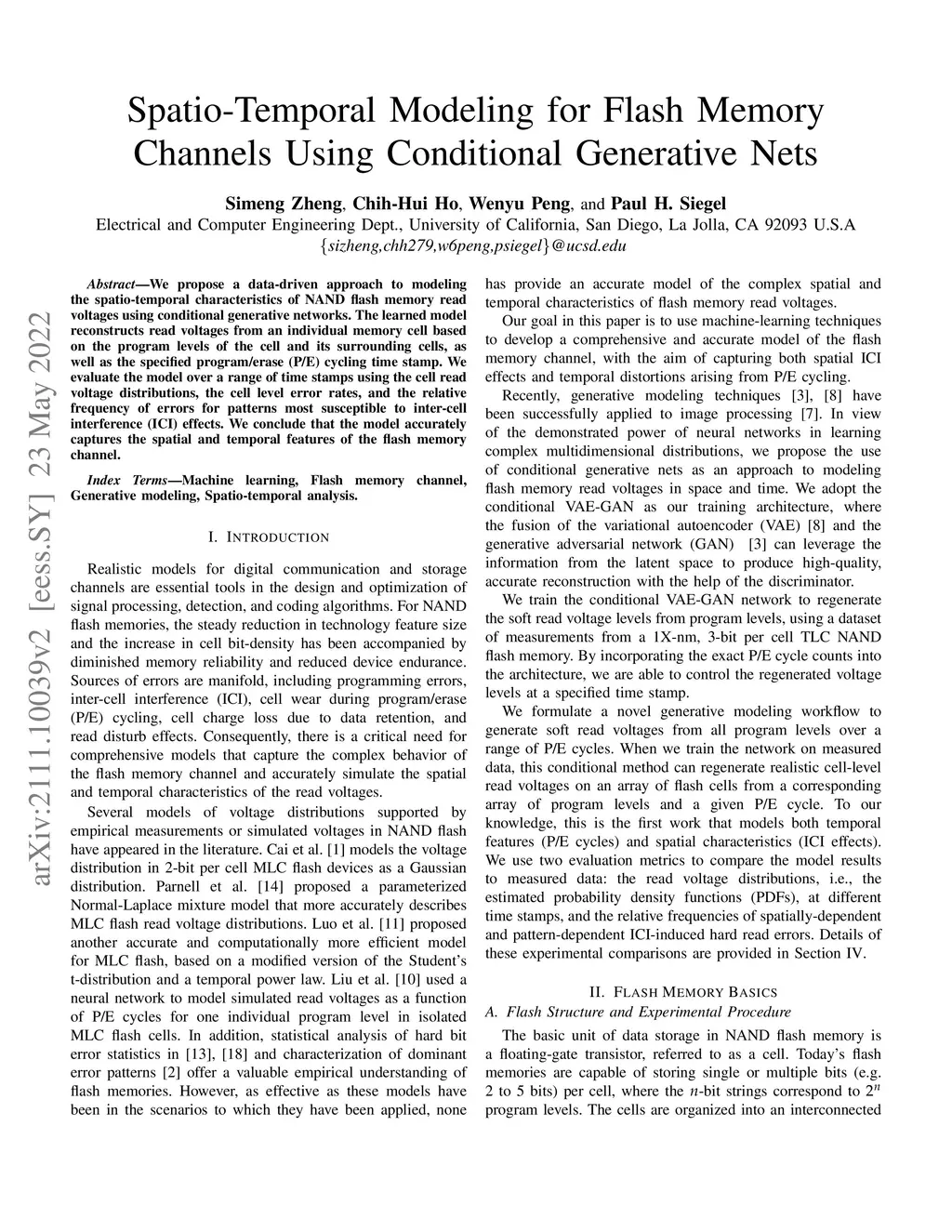 We propose a data-driven approach to modeling the spatio-temporal characteristics of NAND flash memory read voltages using conditional generative networks. The learned model reconstructs read voltages from an individual memory cell based on the program levels of the cell and its surrounding cells, as well as the specified program/erase (P/E) cycling time stamp. We evaluate the model over a range of time stamps using the cell read voltage distributions, the cell level error rates, and the relative frequency of errors for patterns most susceptible to inter-cell interference (ICI) effects. We conclude that the model accurately captures the spatial and temporal features of the flash memory channel.