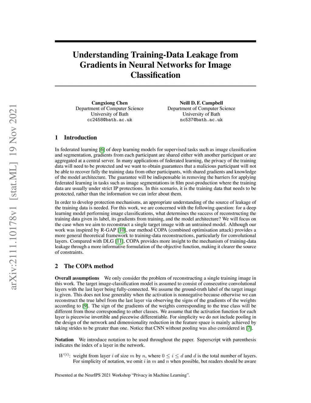 Federated learning of deep learning models for supervised tasks, e.g. image classification and segmentation, has found many applications: for example in human-in-the-loop tasks such as film post-production where it enables sharing of domain expertise of human artists in an efficient and effective fashion. In many such applications, we need to protect the training data from being leaked when gradients are shared in the training process due to IP or privacy concerns. Recent works have demonstrated that it is possible to reconstruct the training data from gradients for an image-classification model when its architecture is known. However, there is still an incomplete theoretical understanding of the efficacy and failure of such attacks. In this paper, we analyse the source of training-data leakage from gradients. We formulate the problem of training data reconstruction as solving an optimisation problem iteratively for each layer. The layer-wise objective function is primarily defined by weights and gradients from the current layer as well as the output from the reconstruction of the subsequent layer, but it might also involve a 'pull-back' constraint from the preceding layer. Training data can be reconstructed when we solve the problem backward from the output of the network through each layer. Based on this formulation, we are able to attribute the potential leakage of the training data in a deep network to its architecture. We also propose a metric to measure the level of security of a deep learning model against gradient-based attacks on the training data.