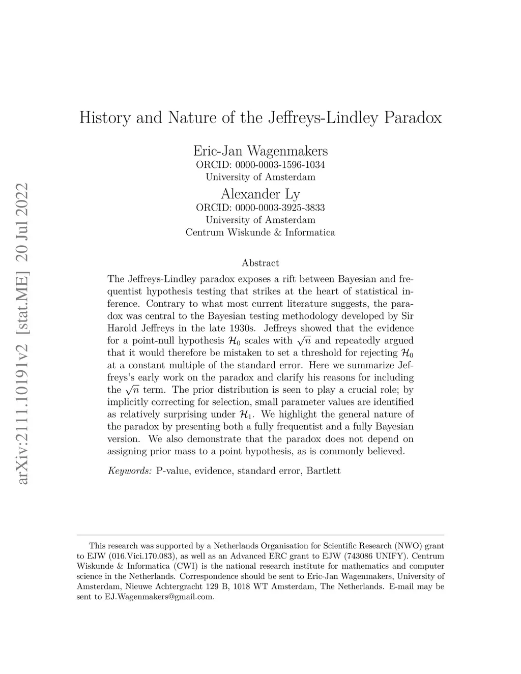The Jeffreys-Lindley paradox exposes a rift between Bayesian and frequentist hypothesis testing that strikes at the heart of statistical inference. Contrary to what most current literature suggests, the paradox was central to the Bayesian testing methodology developed by Sir Harold Jeffreys in the late 1930s. Jeffreys showed that the evidence against a point-null hypothesis scales with and repeatedly argued that it would therefore be mistaken to set a threshold for rejecting at a constant multiple of the standard error. Here we summarize Jeffreys's early work on the paradox and clarify his reasons for including the term. The prior distribution is seen to play a crucial role; by implicitly correcting for selection, small parameter values are identified as relatively surprising under . We highlight the general nature of the paradox by presenting both a fully frequentist and a fully Bayesian version. We also demonstrate that the paradox does not depend on assigning prior mass to a point hypothesis, as is commonly believed.