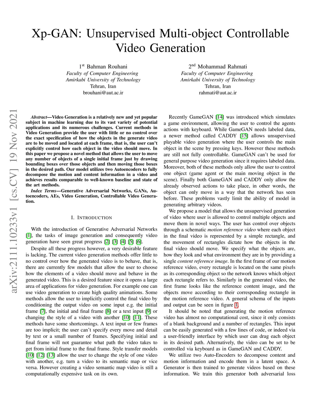 Xp-GAN: Unsupervised Multi-object Controllable Video Generation