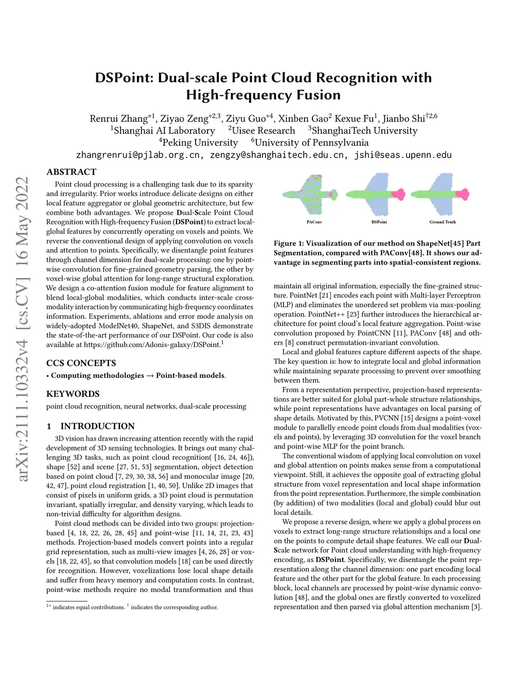 DSPoint: Dual-scale Point Cloud Recognition with High-frequency Fusion