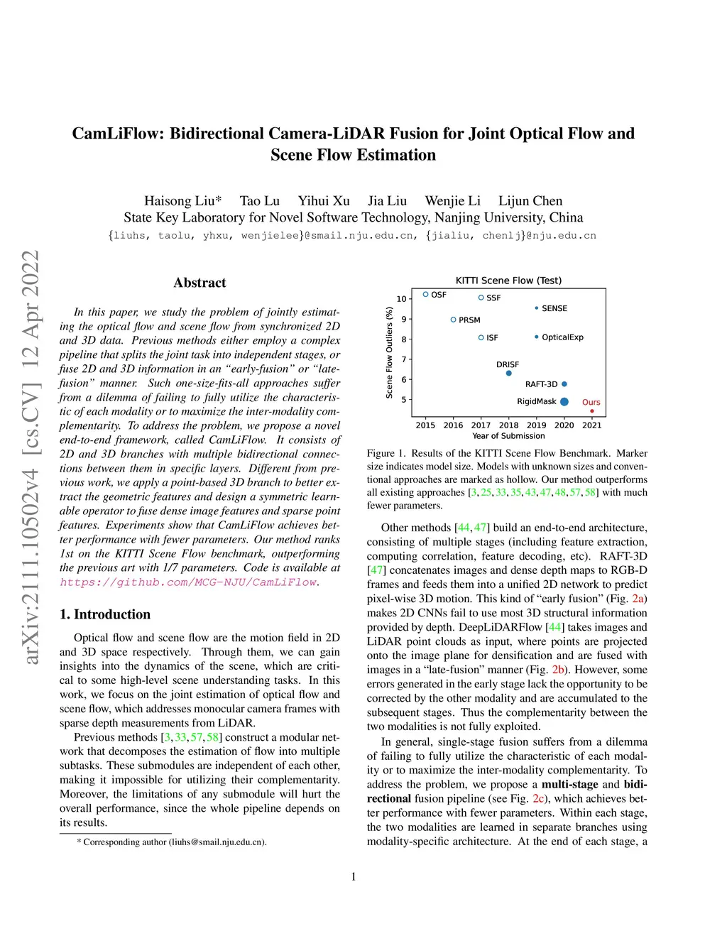 CamLiFlow: Bidirectional Camera-LiDAR Fusion for Joint Optical Flow and