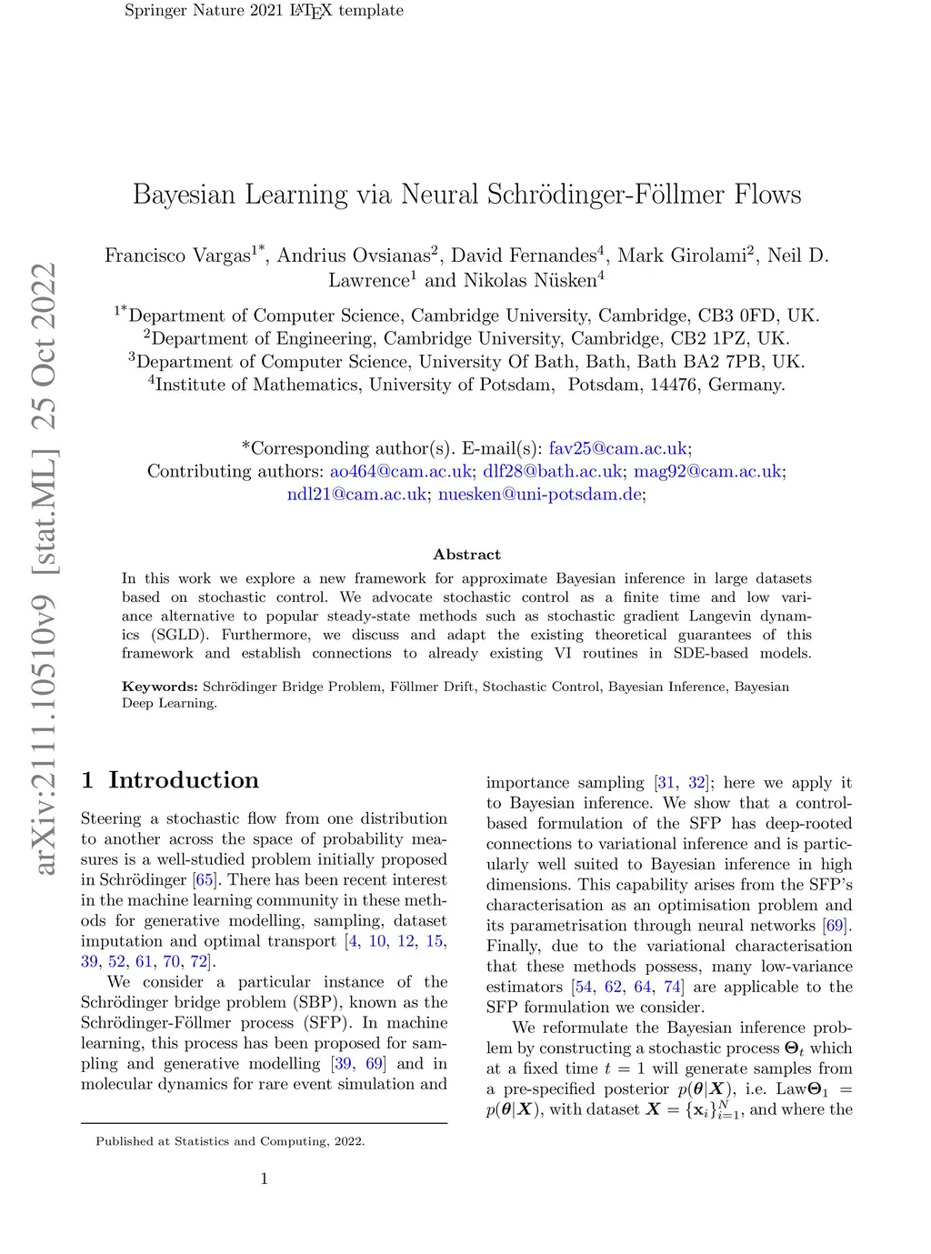 In this work we explore a new framework for approximate Bayesian inference in large datasets based on stochastic control (i.e. Schr\"odinger bridges). We advocate stochastic control as a finite time and low variance alternative to popular steady-state methods such as stochastic gradient Langevin dynamics (SGLD). Furthermore, we discuss and adapt the existing theoretical guarantees of this framework and establish connections to already existing VI routines in SDE-based models.