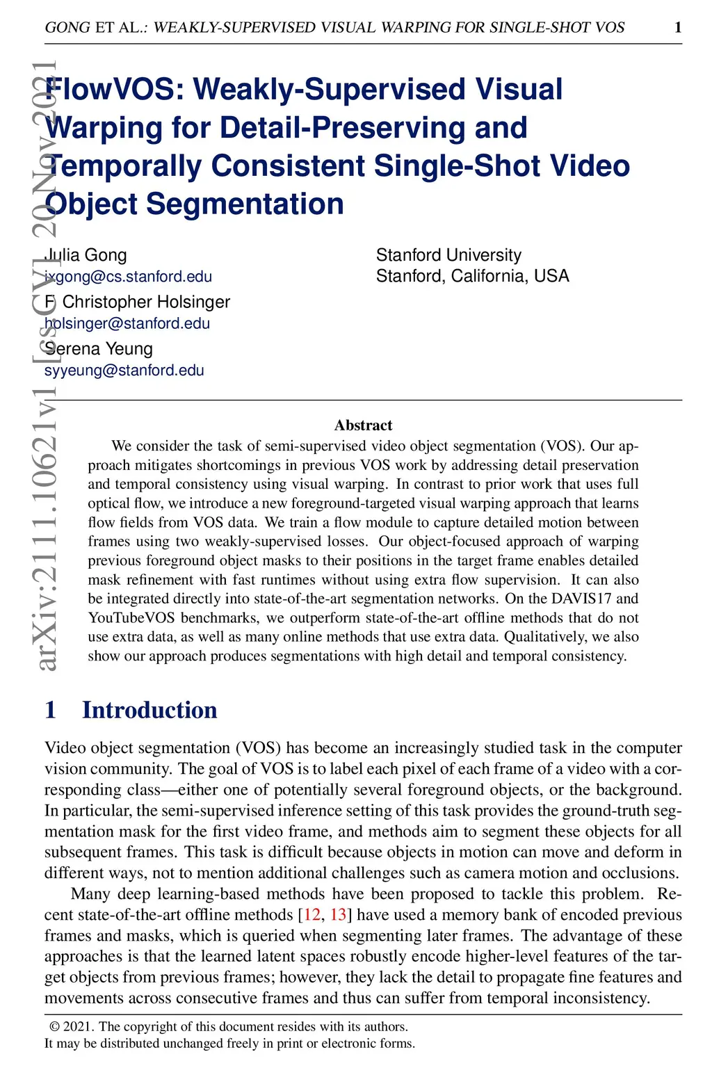 FlowVOS: Weakly-Supervised Visual Warping for Detail-Preserving and