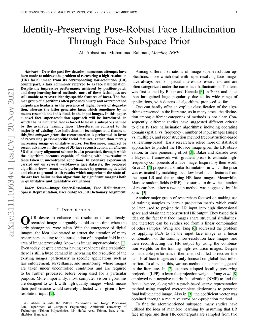 Identity-Preserving Pose-Robust Face Hallucination Through Face Subspace