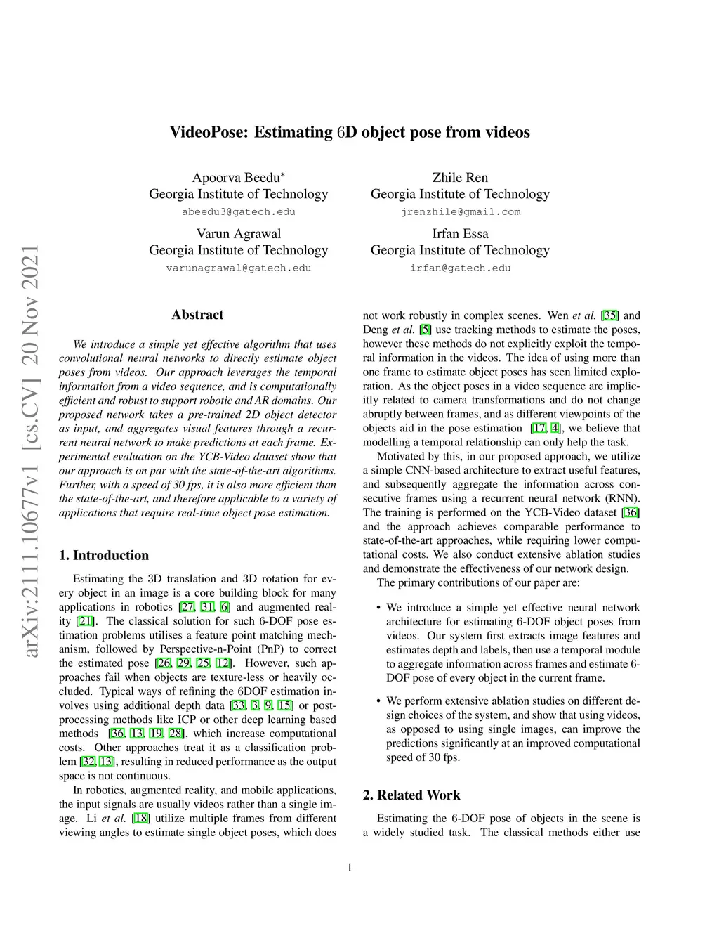 VideoPose: Estimating 6D object pose from videos