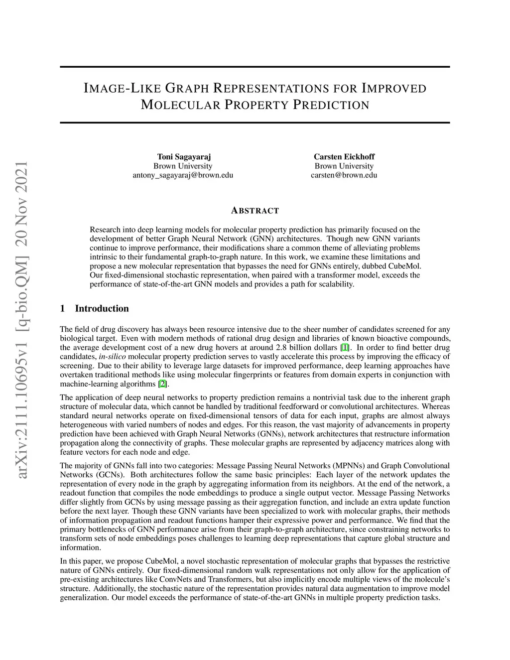 Research into deep learning models for molecular property prediction has primarily focused on the development of better Graph Neural Network (GNN) architectures. Though new GNN variants continue to improve performance, their modifications share a common theme of alleviating problems intrinsic to their fundamental graph-to-graph nature. In this work, we examine these limitations and propose a new molecular representation that bypasses the need for GNNs entirely, dubbed CubeMol. Our fixed-dimensional stochastic representation, when paired with a transformer model, exceeds the performance of state-of-the-art GNN models and provides a path for scalability.