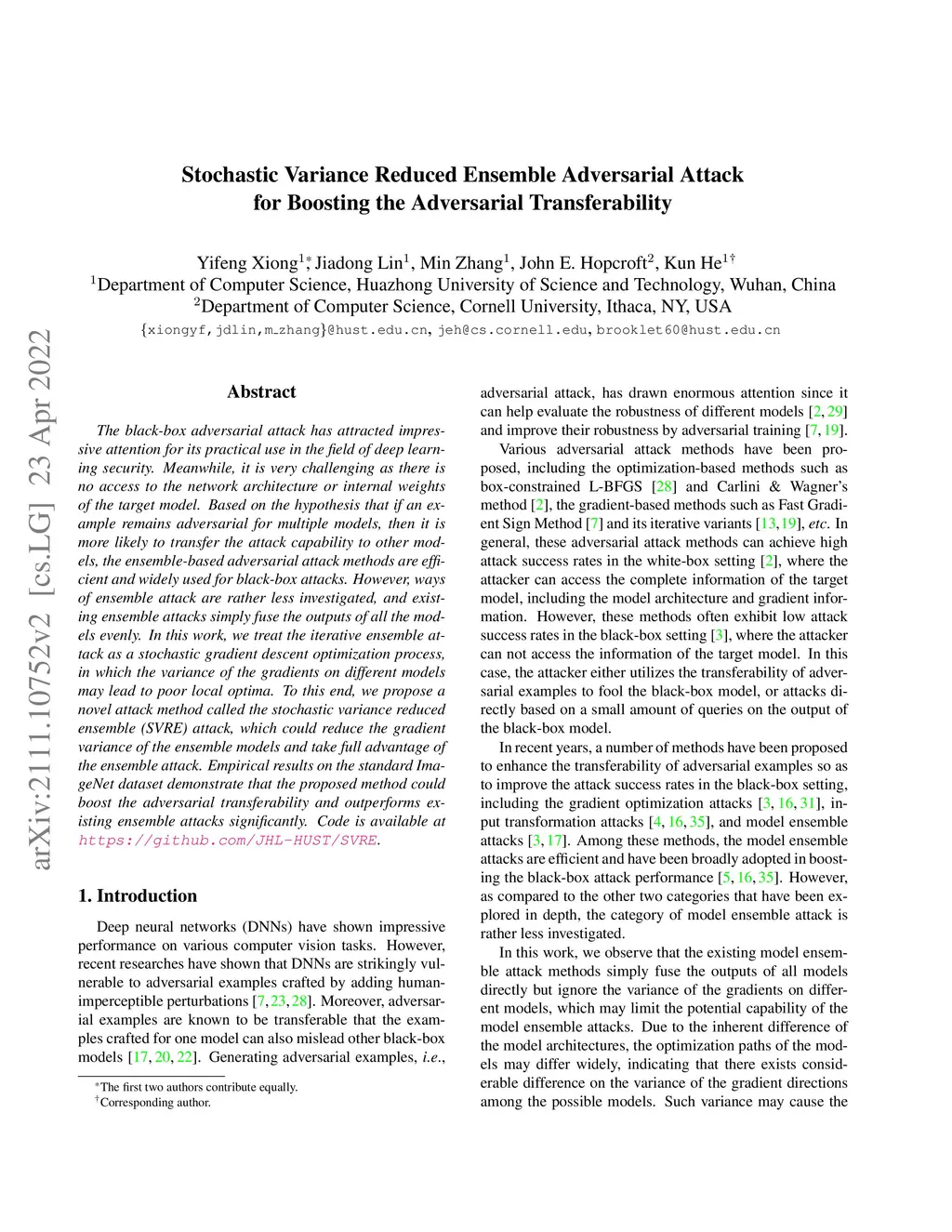 Stochastic Variance Reduced Ensemble Adversarial Attack for Boosting the