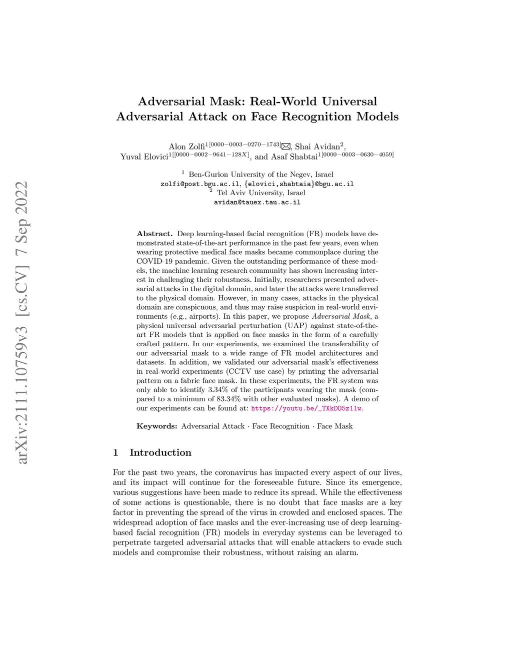 Adversarial Mask: Real-World Universal Adversarial Attack on Face