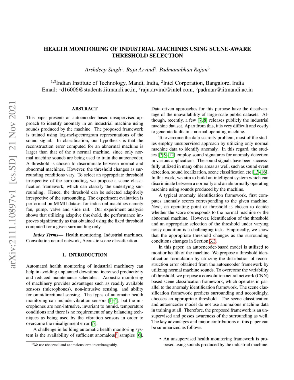 Health Monitoring of Industrial machines using Scene-Aware Threshold