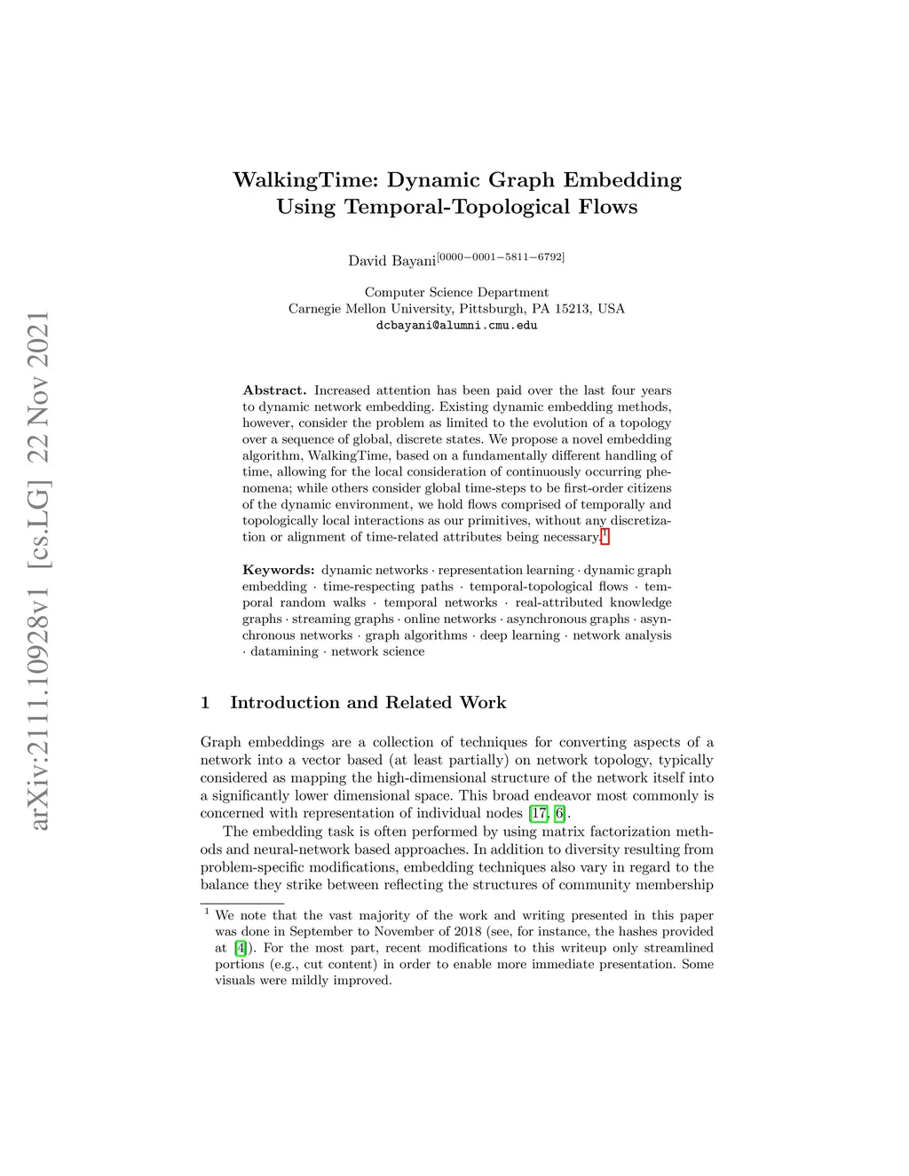 WalkingTime: Dynamic Graph Embedding Using Temporal-Topological Flows