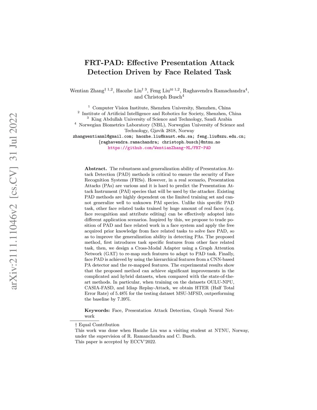 FRT-PAD: Effective Presentation Attack Detection Driven by Face Related