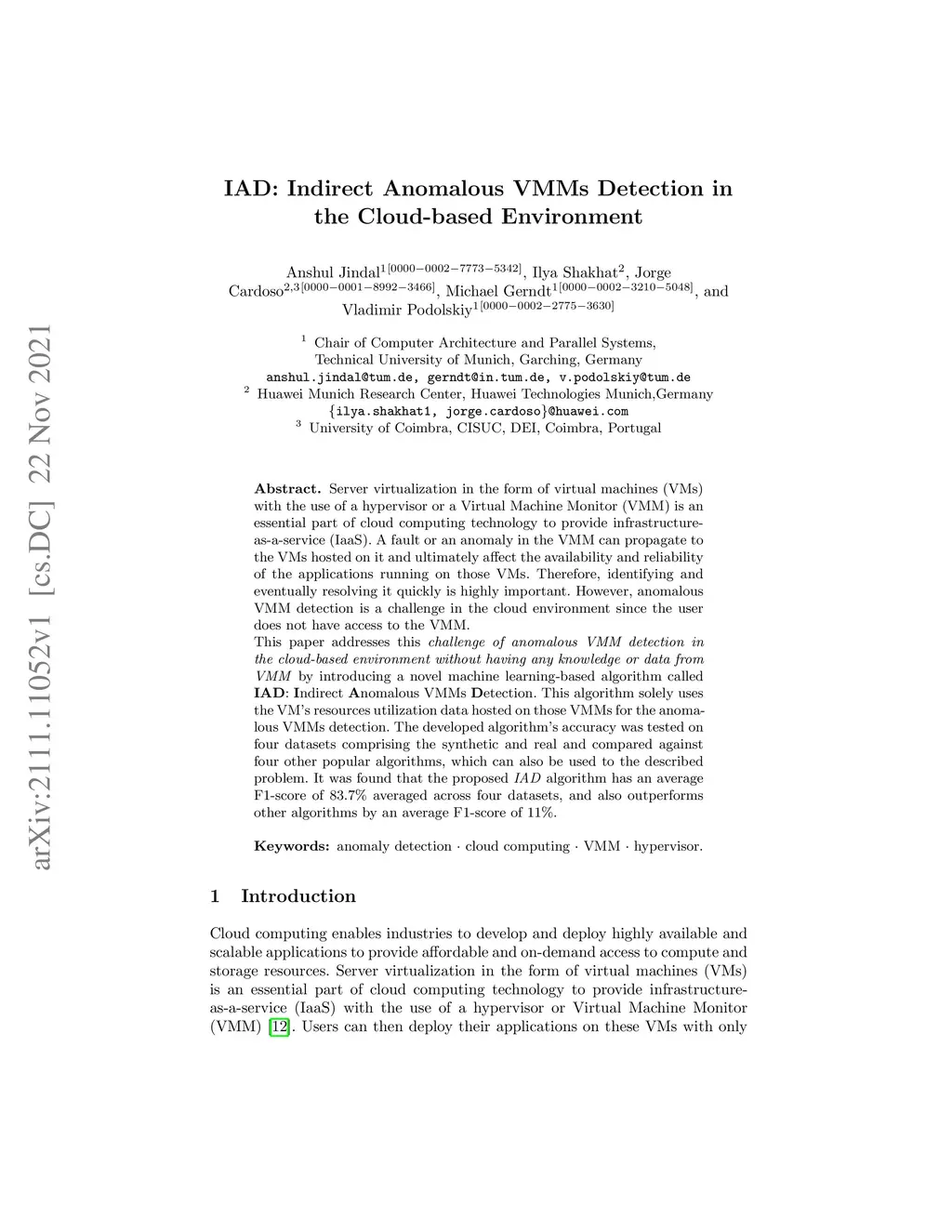 IAD: Indirect Anomalous VMMs Detection in the Cloud-based Environment