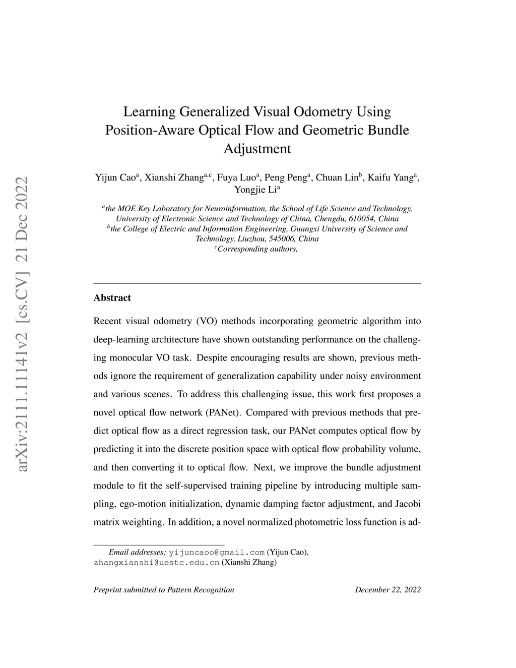 Recent visual odometry (VO) methods incorporating geometric algorithm into deep-learning architecture have shown outstanding performance on the challenging monocular VO task. Despite encouraging results are shown, previous methods ignore the requirement of generalization capability under noisy environment and various scenes. To address this challenging issue, this work first proposes a novel optical flow network (PANet). Compared with previous methods that predict optical flow as a direct regression task, our PANet computes optical flow by predicting it into the discrete position space with optical flow probability volume, and then converting it to optical flow. Next, we improve the bundle adjustment module to fit the self-supervised training pipeline by introducing multiple sampling, ego-motion initialization, dynamic damping factor adjustment, and Jacobi matrix weighting. In addition, a novel normalized photometric loss function is advanced to improve the depth estimation accuracy. The experiments show that the proposed system not only achieves comparable performance with other state-of-the-art self-supervised learning-based methods on the KITTI dataset, but also significantly improves the generalization capability compared with geometry-based, learning-based and hybrid VO systems on the noisy KITTI and the challenging outdoor (KAIST) scenes.