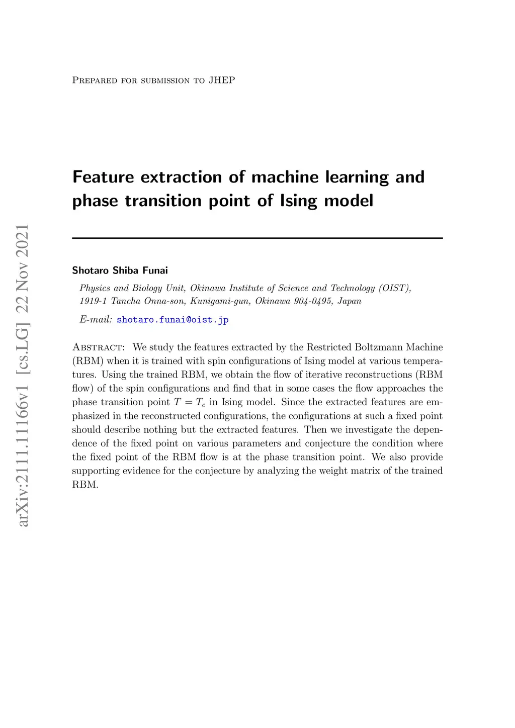 We study the features extracted by the Restricted Boltzmann Machine (RBM) when it is trained with spin configurations of Ising model at various temperatures. Using the trained RBM, we obtain the flow of iterative reconstructions (RBM flow) of the spin configurations and find that in some cases the flow approaches the phase transition point in Ising model. Since the extracted features are emphasized in the reconstructed configurations, the configurations at such a fixed point should describe nothing but the extracted features. Then we investigate the dependence of the fixed point on various parameters and conjecture the condition where the fixed point of the RBM flow is at the phase transition point. We also provide supporting evidence for the conjecture by analyzing the weight matrix of the trained RBM.