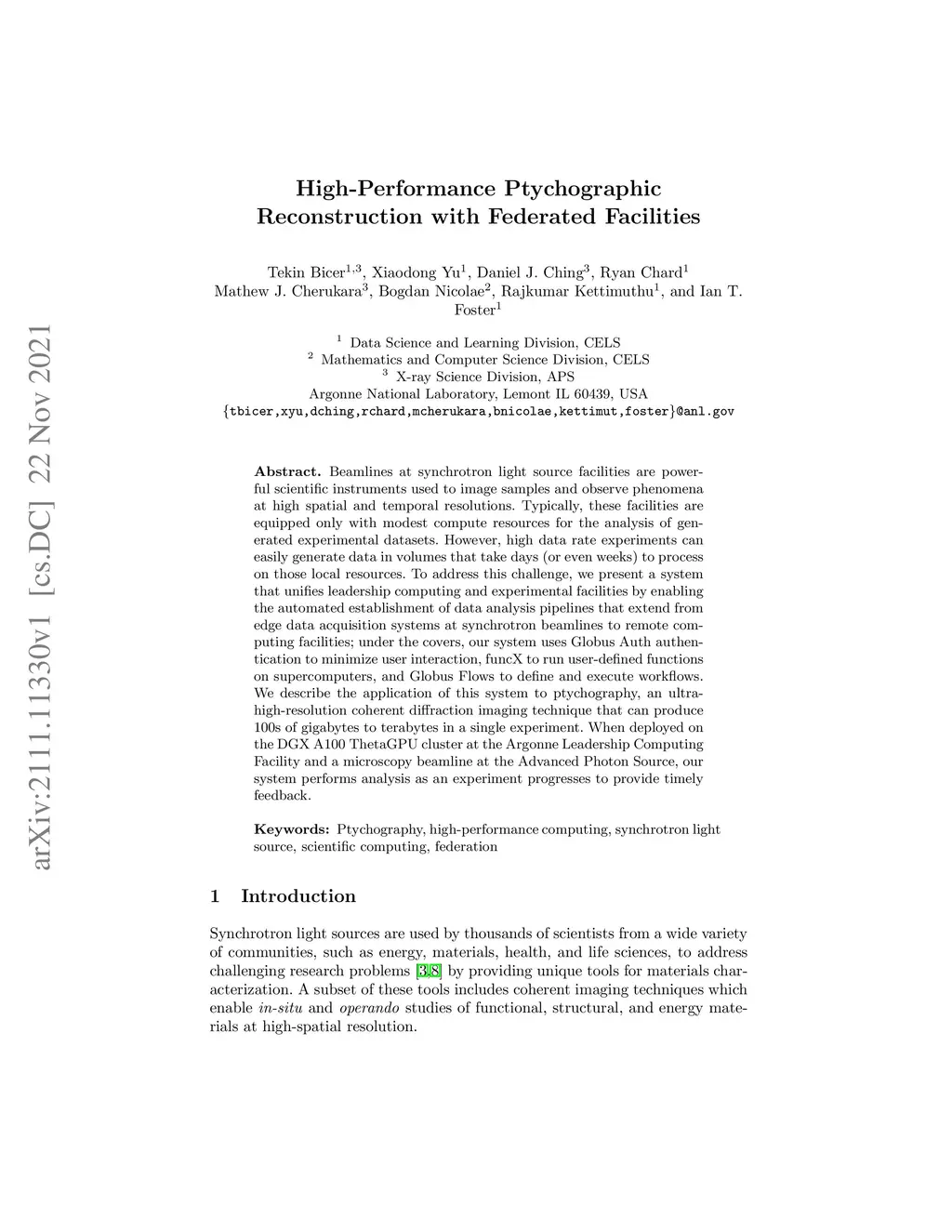 High-Performance Ptychographic Reconstruction with Federated Facilities