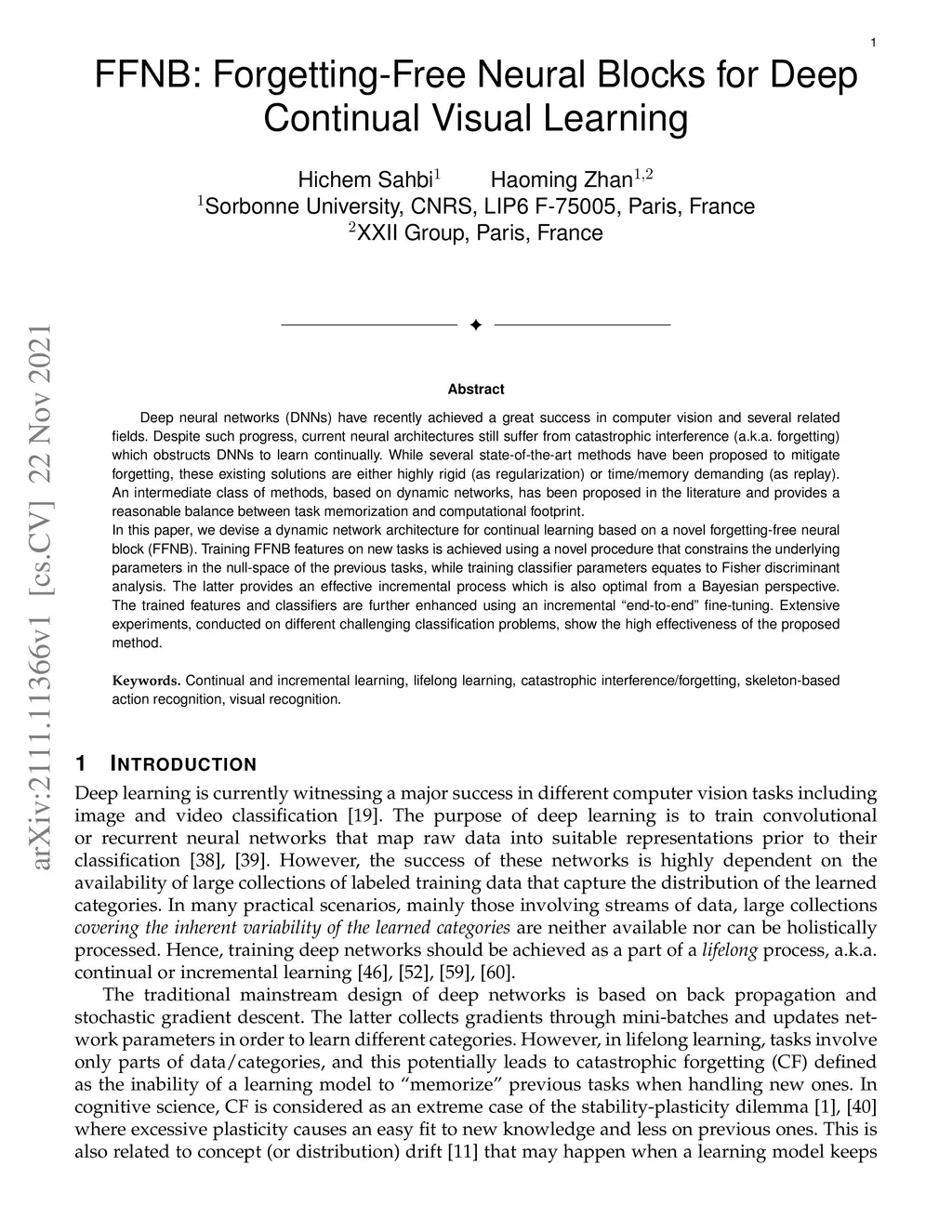 FFNB: Forgetting-Free Neural Blocks for Deep Continual Visual Learning