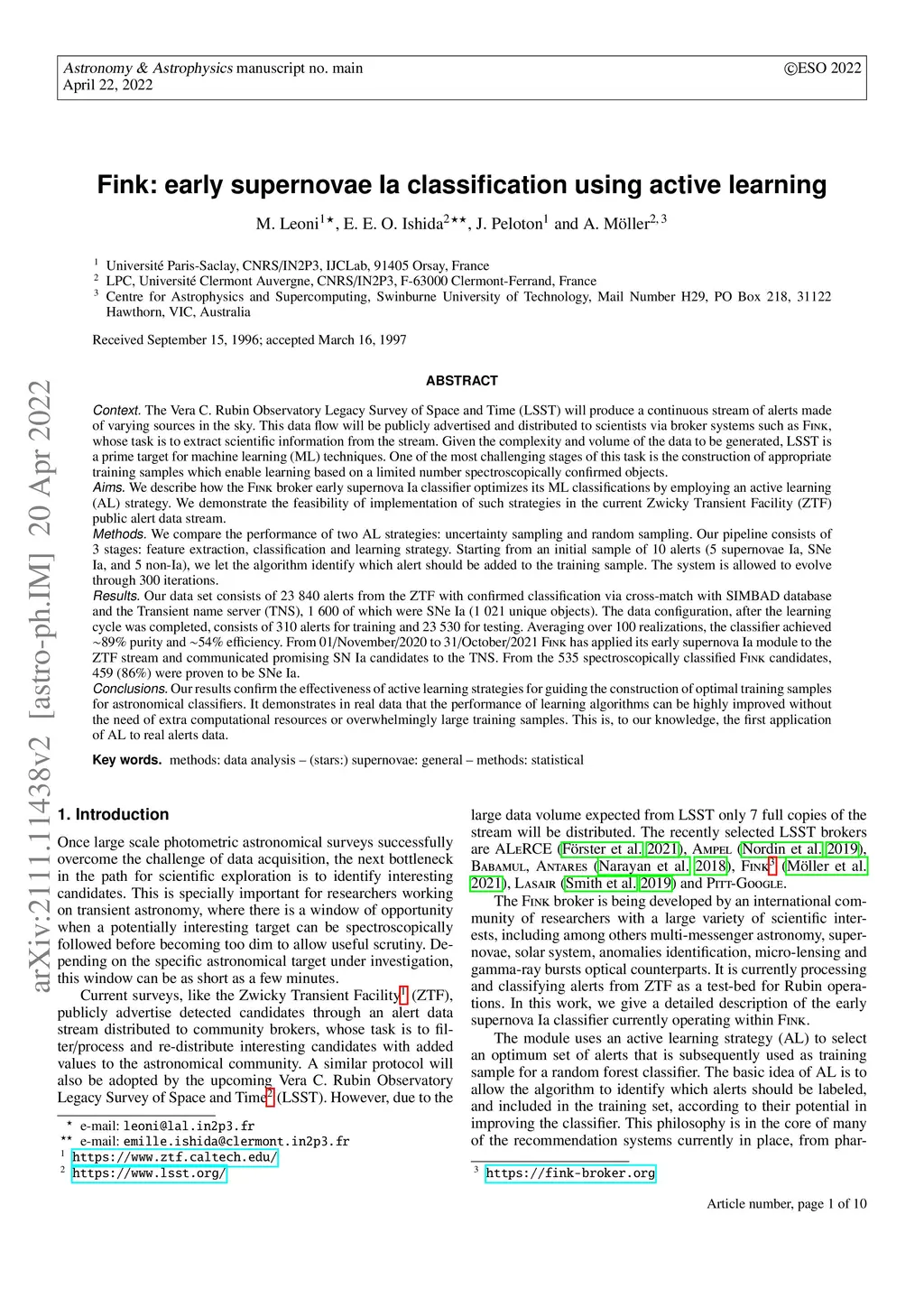 Fink: early supernovae Ia classification using active learning