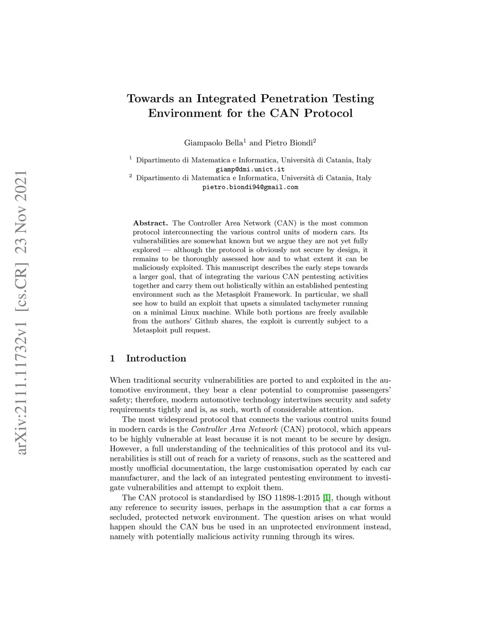 The Controller Area Network (CAN) is the most common protocol interconnecting the various control units of modern cars. Its vulnerabilities are somewhat known but we argue they are not yet fully explored -- although the protocol is obviously not secure by design, it remains to be thoroughly assessed how and to what extent it can be maliciously exploited. This manuscript describes the early steps towards a larger goal, that of integrating the various CAN pentesting activities together and carry them out holistically within an established pentesting environment such as the Metasploit Framework. In particular, we shall see how to build an exploit that upsets a simulated tachymeter running on a minimal Linux machine. While both portions are freely available from the authors' Github shares, the exploit is currently subject to a Metasploit pull request.