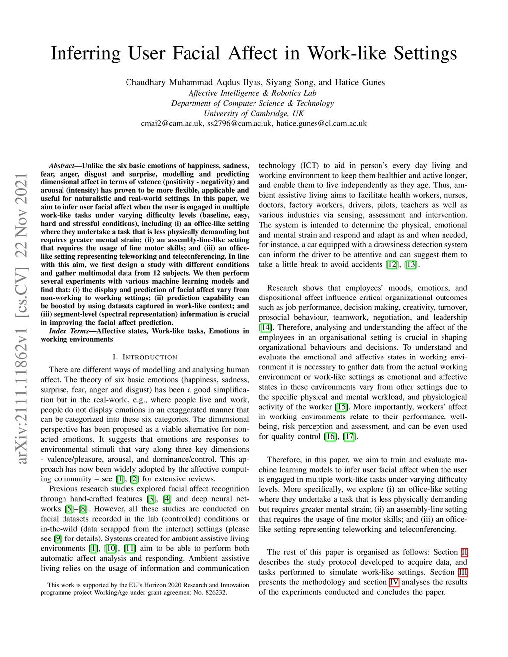 Inferring User Facial Affect in Work-like Settings