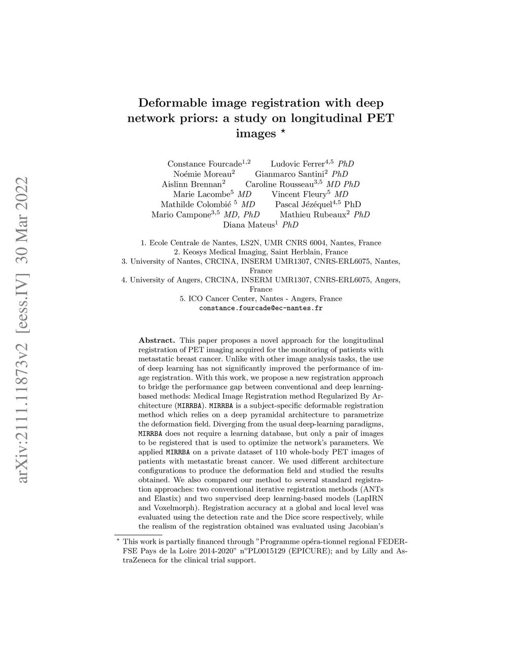 Longitudinal image registration is challenging and has not yet benefited from major performance improvements thanks to deep-learning. Inspired by Deep Image Prior, this paper introduces a different use of deep architectures as regularizers to tackle the image registration question. We propose a subject-specific deformable registration method called MIRRBA, relying on a deep pyramidal architecture to be the prior parametric model constraining the deformation field. Diverging from the supervised learning paradigm, MIRRBA does not require a learning database, but only the pair of images to be registered to optimize the network's parameters and provide a deformation field. We demonstrate the regularizing power of deep architectures and present new elements to understand the role of the architecture in deep learning methods for registration. Hence, to study the impact of the network parameters, we ran our method with different architectural configurations on a private dataset of 110 metastatic breast cancer full-body PET images with manual segmentations of the brain, bladder and metastatic lesions. We compared it against conventional iterative registration approaches and supervised deep learning-based models. Global and local registration accuracies were evaluated using the detection rate and the Dice score respectively, while registration realism was evaluated using the Jacobian's determinant. Moreover, we computed the ability of the different methods to shrink vanishing lesions with the disappearing rate. MIRRBA significantly improves the organ and lesion Dice scores of supervised models. Regarding the disappearing rate, MIRRBA more than doubles the best performing conventional approach SyNCC score. Our work therefore proposes an alternative way to bridge the performance gap between conventional and deep learning-based methods and demonstrates the regularizing power of deep architectures.