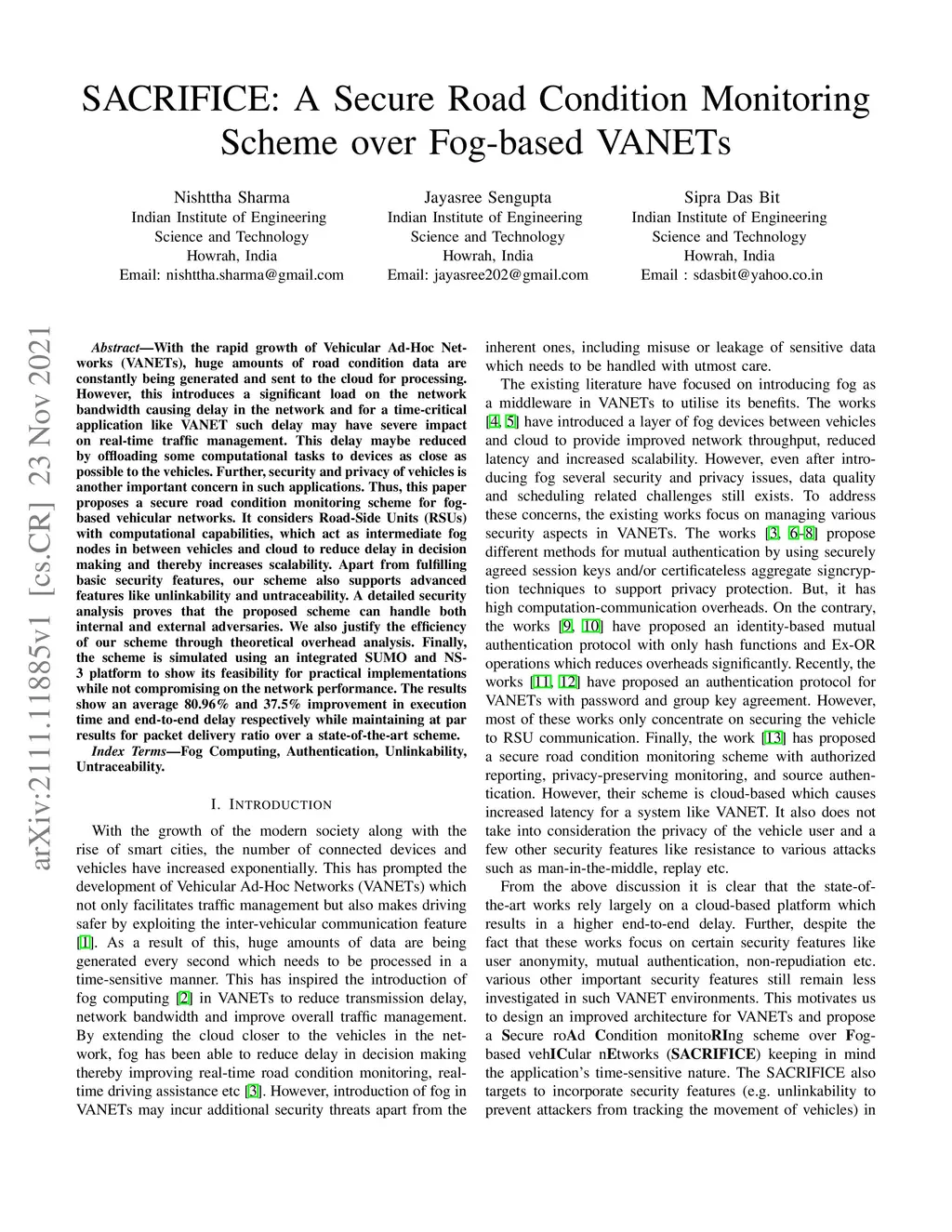 SACRIFICE: A Secure Road Condition Monitoring Scheme over Fog-based