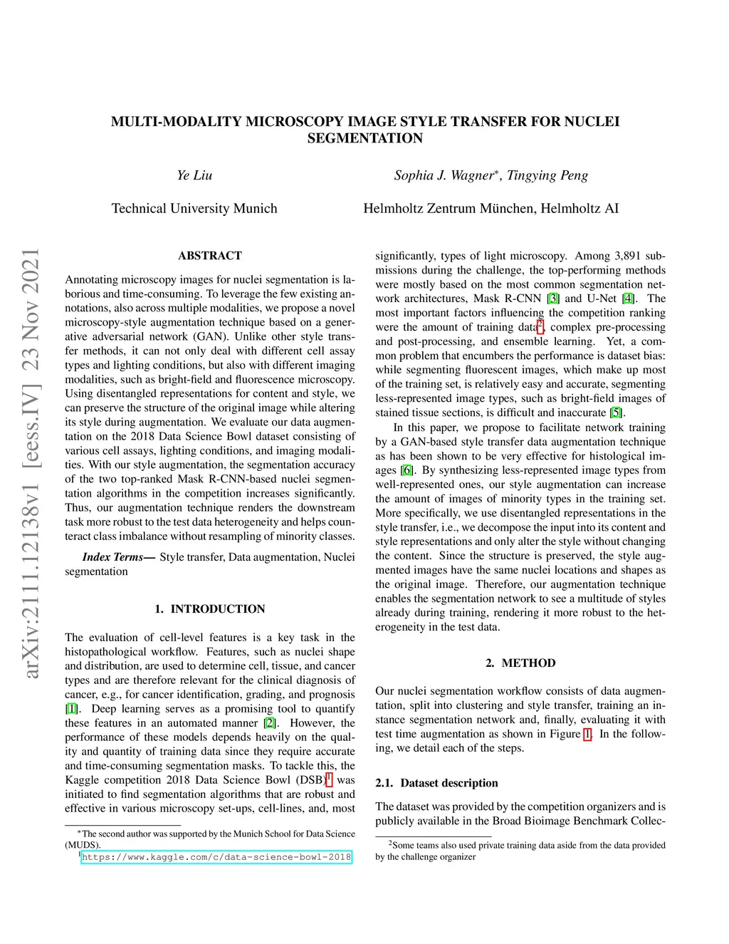 Multi-Modality Microscopy Image Style Transfer for Nuclei Segmentation