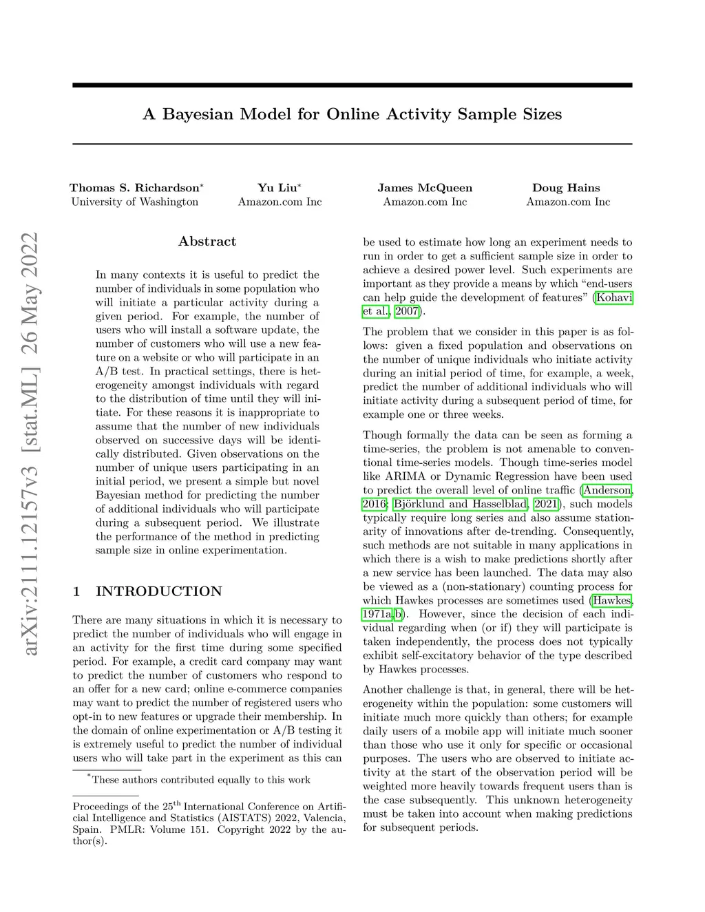 In many contexts it is useful to predict the number of individuals in some population who will initiate a particular activity during a given period. For example, the number of users who will install a software update, the number of customers who will use a new feature on a website or who will participate in an A/B test. In practical settings, there is heterogeneity amongst individuals with regard to the distribution of time until they will initiate. For these reasons it is inappropriate to assume that the number of new individuals observed on successive days will be identically distributed. Given observations on the number of unique users participating in an initial period, we present a simple but novel Bayesian method for predicting the number of additional individuals who will participate during a subsequent period. We illustrate the performance of the method in predicting sample size in online experimentation.