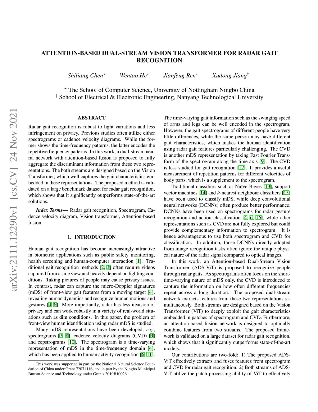 Attention-based Dual-stream Vision Transformer for Radar Gait