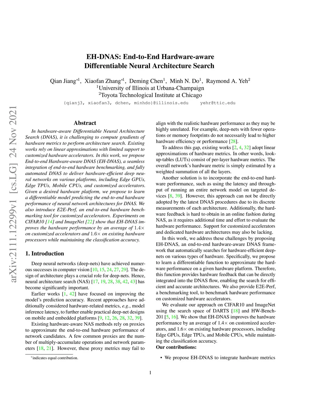 EH-DNAS: End-to-End Hardware-aware Differentiable Neural Architecture