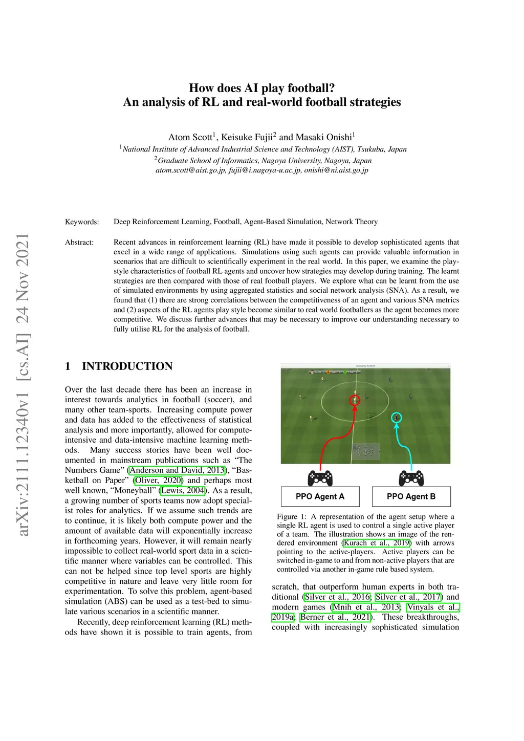 Recent advances in reinforcement learning (RL) have made it possible to develop sophisticated agents that excel in a wide range of applications. Simulations using such agents can provide valuable information in scenarios that are difficult to scientifically experiment in the real world. In this paper, we examine the play-style characteristics of football RL agents and uncover how strategies may develop during training. The learnt strategies are then compared with those of real football players. We explore what can be learnt from the use of simulated environments by using aggregated statistics and social network analysis (SNA). As a result, we found that (1) there are strong correlations between the competitiveness of an agent and various SNA metrics and (2) aspects of the RL agents play style become similar to real world footballers as the agent becomes more competitive. We discuss further advances that may be necessary to improve our understanding necessary to fully utilise RL for the analysis of football.