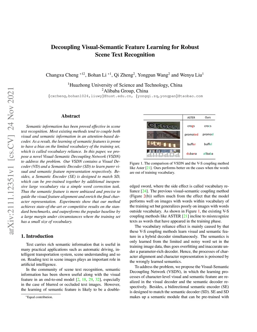 Decoupling Visual-Semantic Feature Learning for Robust Scene Text