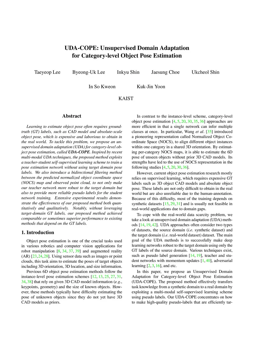 UDA-COPE: Unsupervised Domain Adaptation for Category-level Object Pose