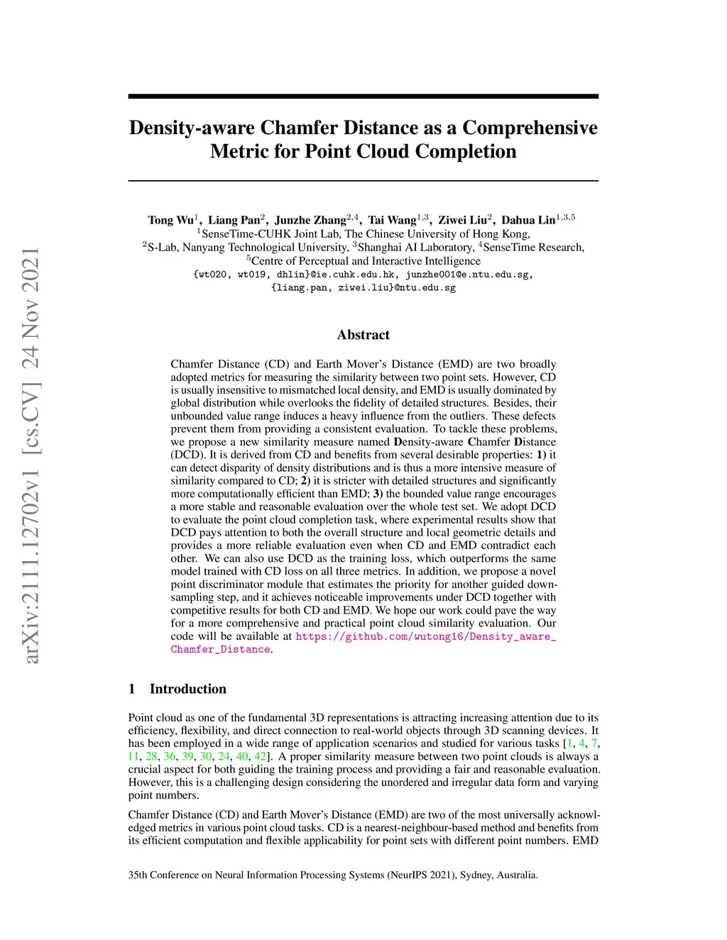 Density-aware Chamfer Distance as a Comprehensive Metric for Point Cloud