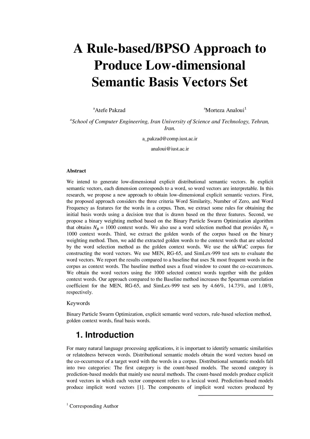 A Rule-based/BPSO Approach to Produce Low-dimensional Semantic Basis