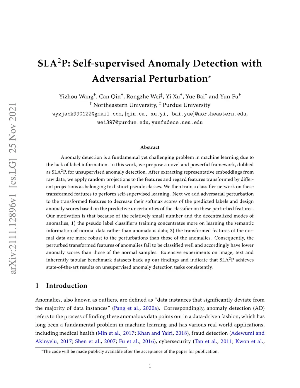 SLAP: Self-supervised Anomaly Detection with Adversarial