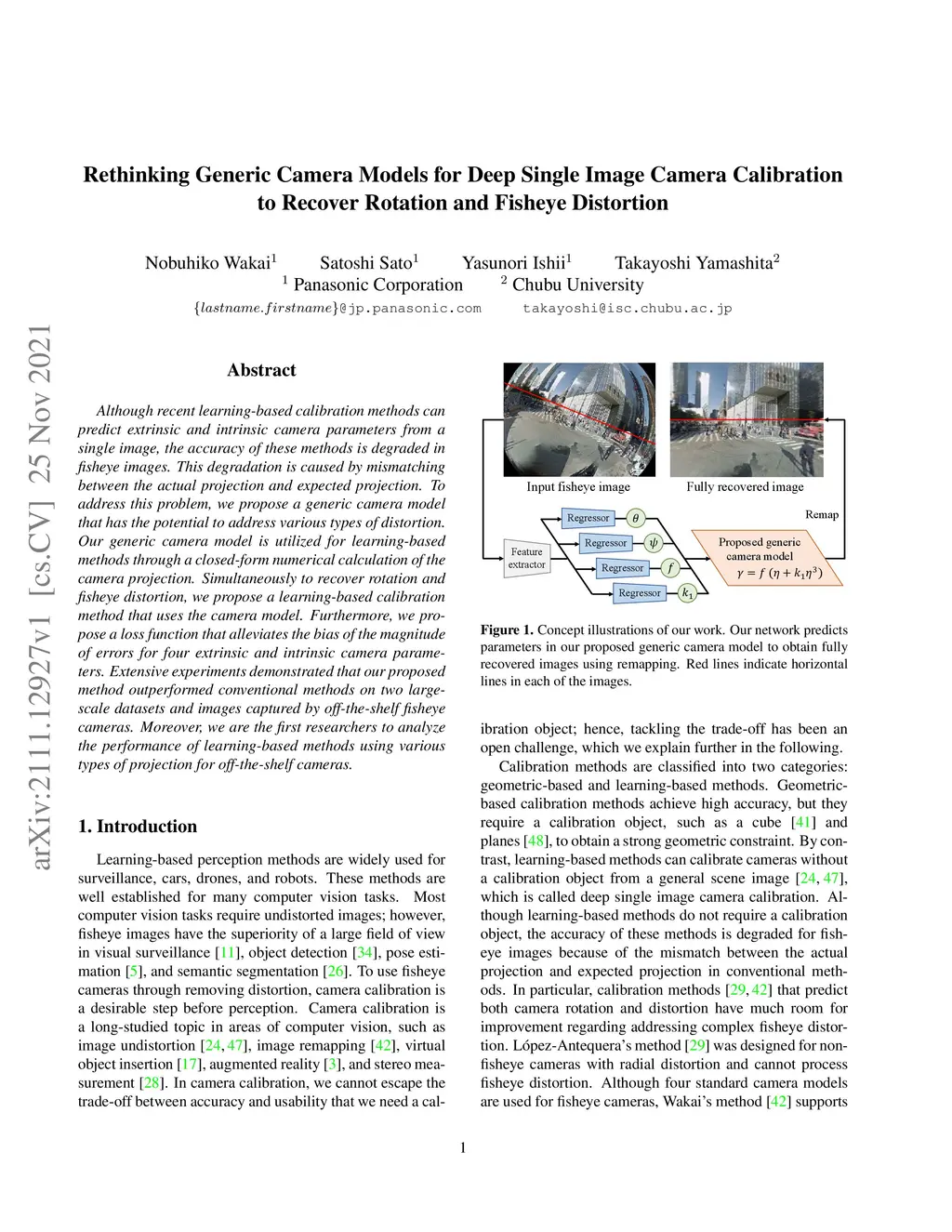 Although recent learning-based calibration methods can predict extrinsic and intrinsic camera parameters from a single image, the accuracy of these methods is degraded in fisheye images. This degradation is caused by mismatching between the actual projection and expected projection. To address this problem, we propose a generic camera model that has the potential to address various types of distortion. Our generic camera model is utilized for learning-based methods through a closed-form numerical calculation of the camera projection. Simultaneously to recover rotation and fisheye distortion, we propose a learning-based calibration method that uses the camera model. Furthermore, we propose a loss function that alleviates the bias of the magnitude of errors for four extrinsic and intrinsic camera parameters. Extensive experiments demonstrated that our proposed method outperformed conventional methods on two largescale datasets and images captured by off-the-shelf fisheye cameras. Moreover, we are the first researchers to analyze the performance of learning-based methods using various types of projection for off-the-shelf cameras.