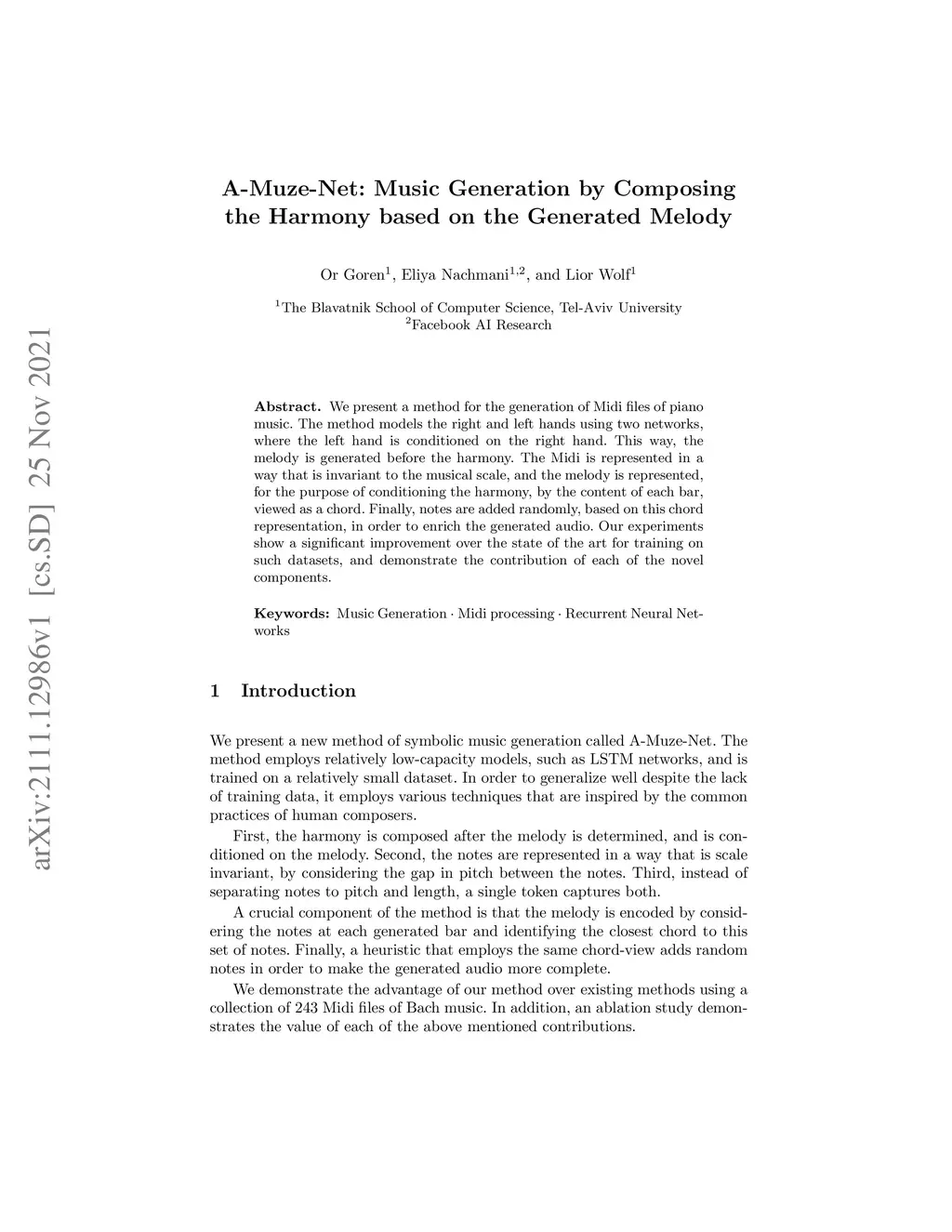 A-Muze-Net: Music Generation by Composing the Harmony based on the
