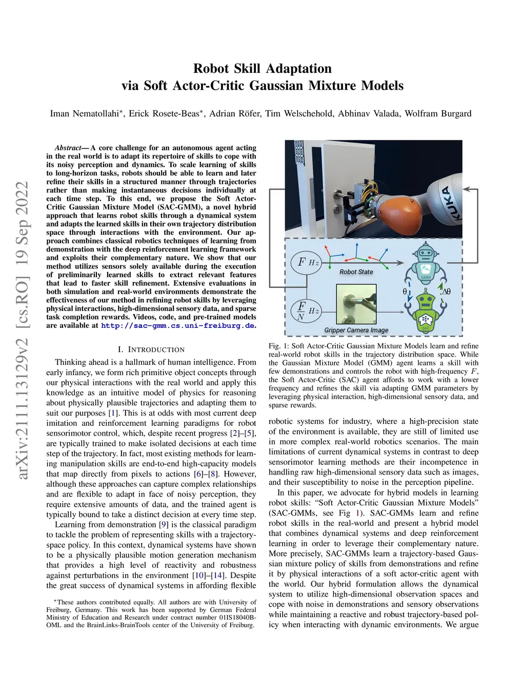 Robot Skill Adaptation via Soft Actor-Critic Gaussian Mixture Models