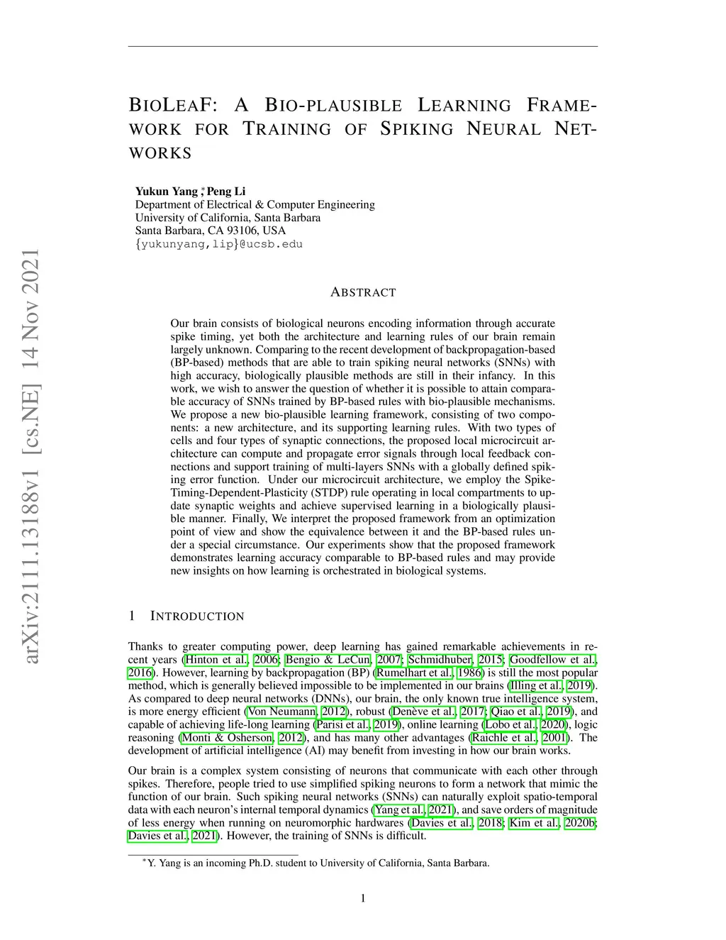 BioLeaF: A Bio-plausible Learning Framework for Training of Spiking