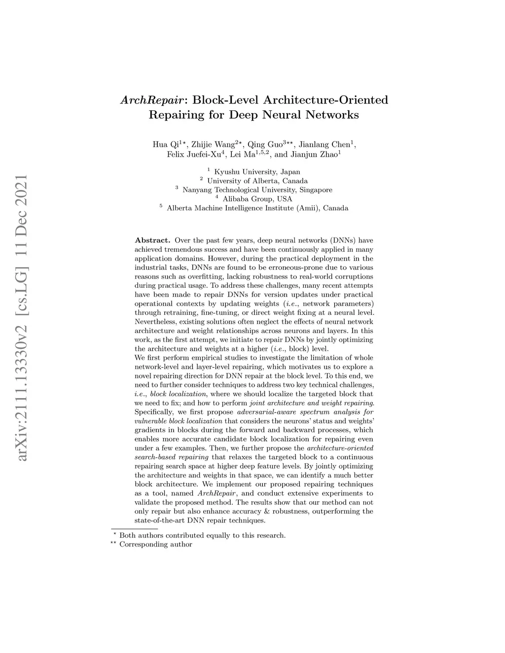 ArchRepair: Block-Level Architecture-Oriented Repairing for Deep Neural